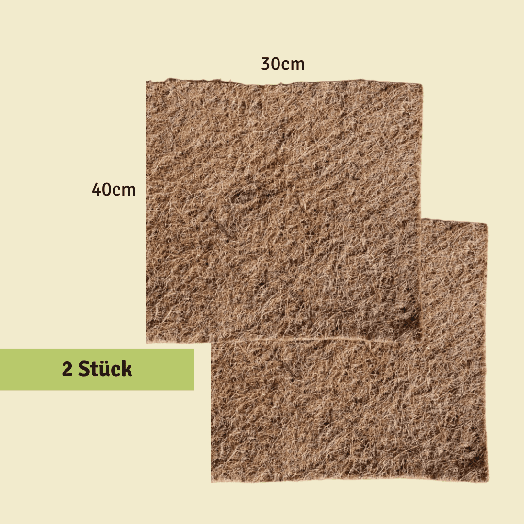 Für die Standardwurmkiste und Kleine Wurmkiste passt die Matte genau. Für dei Grosse Familienwurmkiste verwende beide Kokosmatten.