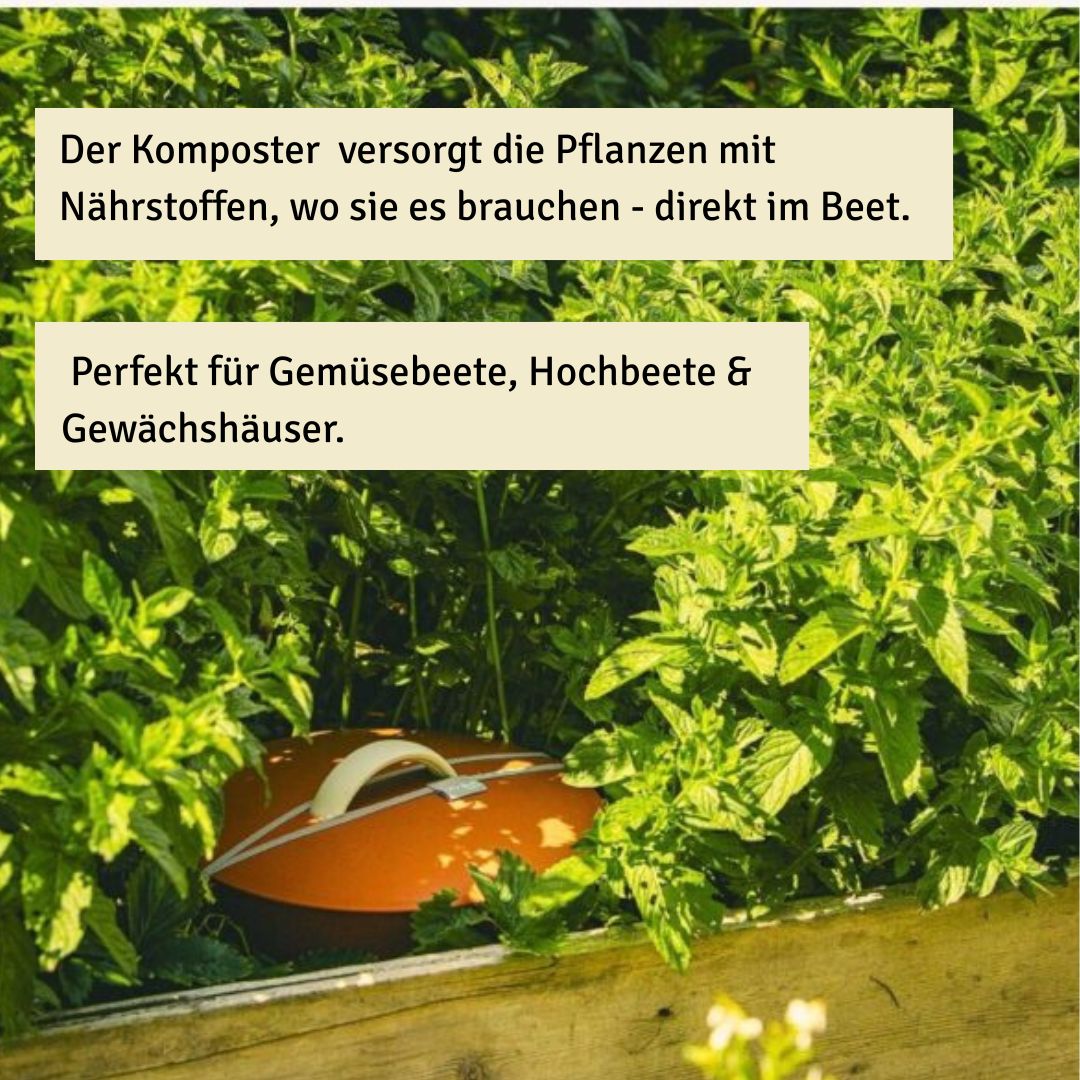 🌿Direkt im Beet integriert – Der Komposter verschwindet fast unsichtbar in der Erde und versorgt die Pflanzen dort, wo sie es brauchen.