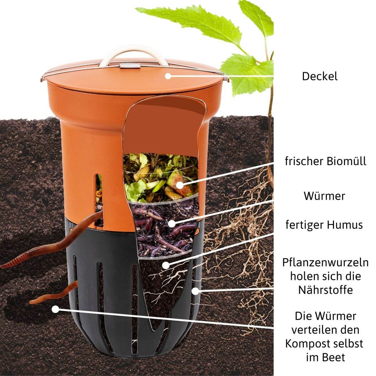 🌿 Direkt im Beet integriert – Der Komposter verschwindet fast unsichtbar in der Erde und versorgt die Pflanzen dort, wo sie es brauchen.