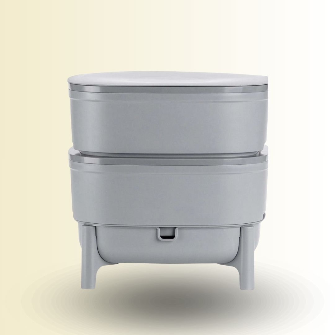 Mit diesem modernen Kompostsystem lässt sich sowohl hochwertiger Wurmkompost als auch Wurmtee als Flüssigdünger herstellen. Biomüll rein . Deckel zu . die Würmer erledigen den Rest. So entsteht in Hand um Drehen in deiner Küche hochwertige Komposterde für Garten, Balkon oder Zimmerpflanzen.