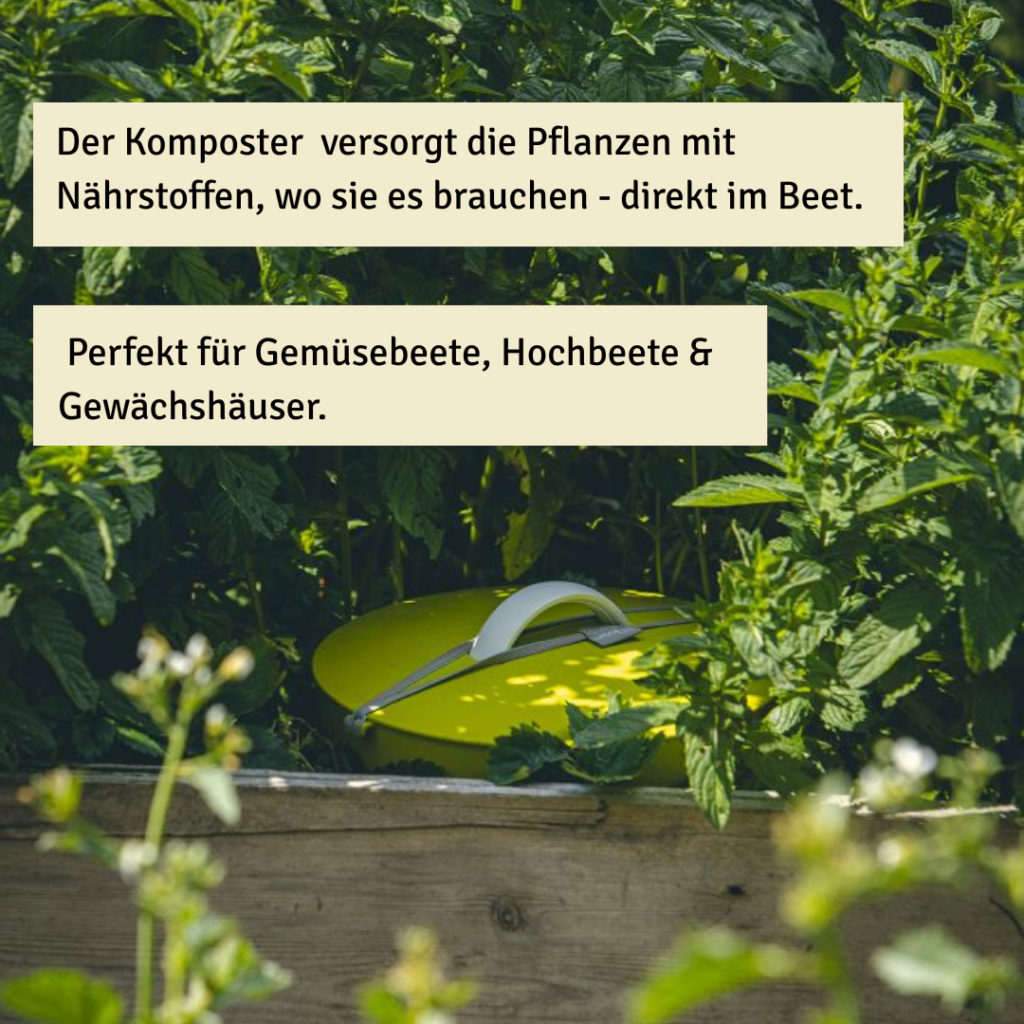 Die WurmBAR st zwar nicht fürs Haus, aber sollte hier trotzdem nicht fehlen. Der Praktische Beetkomposter verwerte Biomüll, dort wo der Kompost später gebraucht wird – direkt im Beet.
